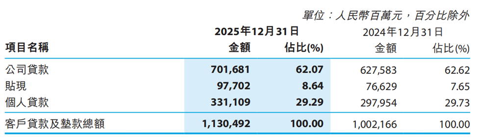 从贷款投向来看,2025年徽商银行将超六成(占比62.07%)投向了对公业务,约三成(占比29.29%)投向零售端,且对公贷款和零售贷款余额均较上年度有所增长,前者增速(11.81%)与后者(11.13%)相当,非常接近。